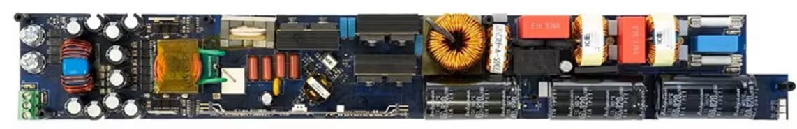 3kW server power supply — This evaluation board, EVAL_3KW_50V_PSU, introduced by Infineon, is a 3kW 50V power supply for servers and data centers. Its dimensions are 520mm x 40mm x 73.5mm, with a frequency range of 45kHz to 160kHz. It supports AC input, with an output current of 0A to 60A and an output voltage of 48V to 50V. The supply voltage ranges from 178V to 275V, and the output power is 3000W. It supports topology structures such as PFC, LLC, isolation, half-bridge, and continuous conduction mode (CCM). It uses product series like CoolSiC™, CoolMOS™, OptiMOS™, and EiceDRIVER™, targeting applications such as servers, telecommunications, switch-mode power supplies, power supplies, and industrial power supplies.